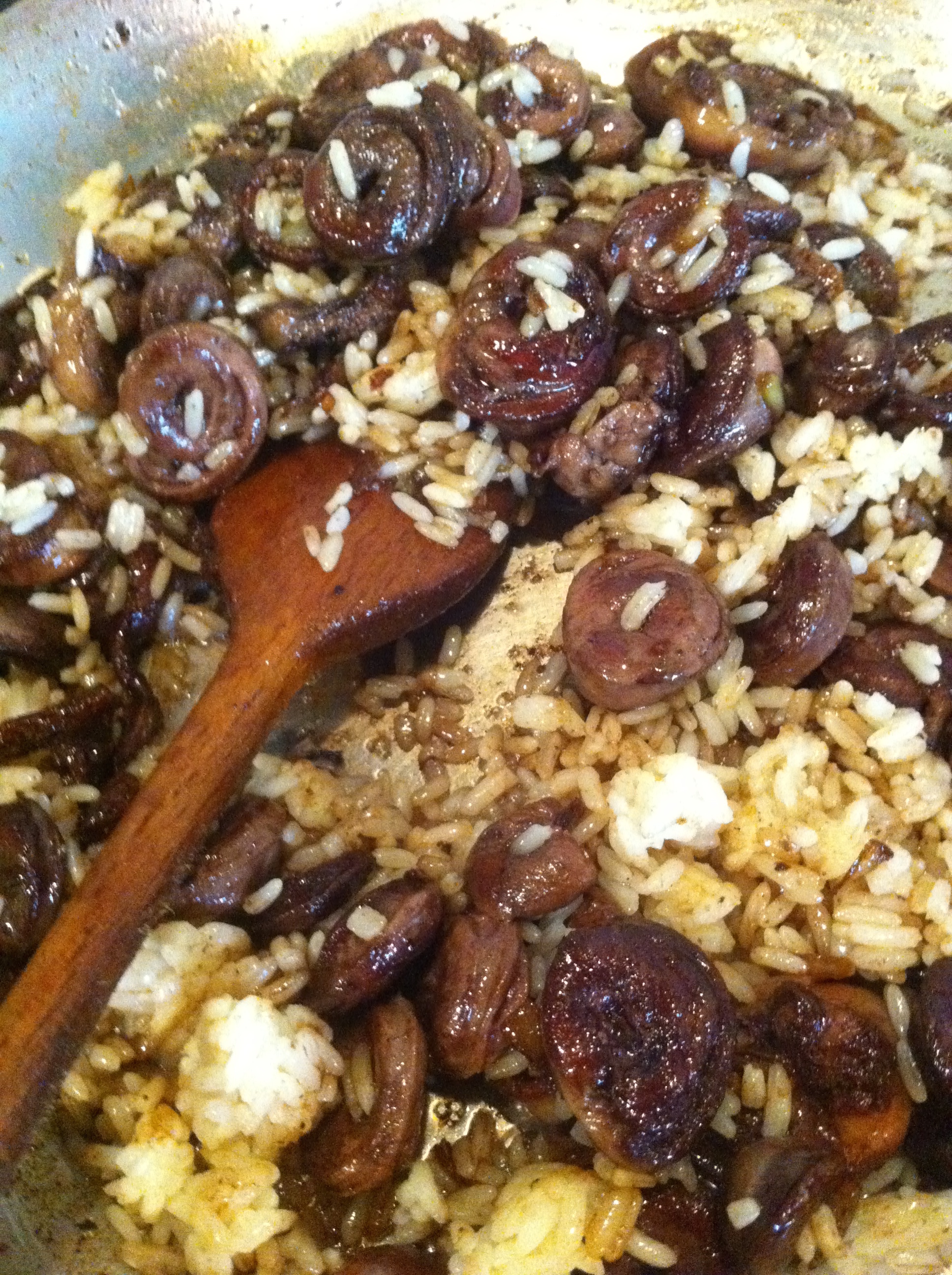 This is the first time I’ve added last night’s rice to today’s duck hearts.
